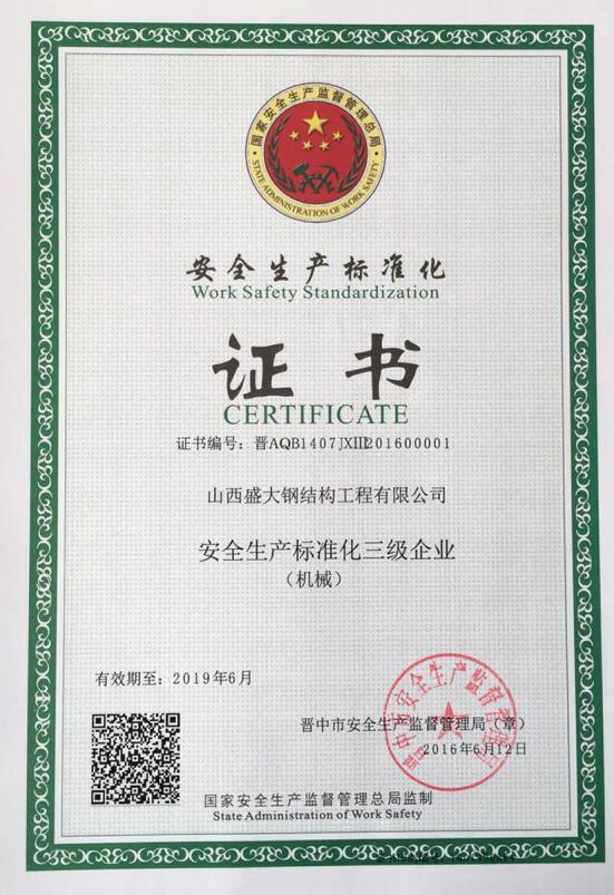 山西盛大鋼結(jié)構(gòu)工程有限公司 山西盛大鋼結(jié)構(gòu)工程有限公司成立于1996年,坐落于國(guó)家歷史文化名城——山西祁縣。擁有兩大智能化鋼結(jié)構(gòu)生產(chǎn)基地,占地110畝,建筑面積3萬(wàn)余平方米,具備鋼結(jié)構(gòu)專業(yè)承包貳級(jí)、建筑工程施工總承包貳級(jí)資質(zhì),是一家集設(shè)計(jì)、制造、施工于一體的大型鋼結(jié)構(gòu)工程企業(yè)。 盛大鋼構(gòu)是中國(guó)鋼結(jié)構(gòu)協(xié)會(huì)會(huì)員單位,山西鋼結(jié)構(gòu)協(xié)會(huì)副會(huì)長(zhǎng)單位,山西建筑企業(yè)商會(huì)理事單位,山西省土木建筑學(xué)會(huì)會(huì)員單位,擁有國(guó)家知識(shí)產(chǎn)權(quán)局注冊(cè)商標(biāo)。公司已通過ISO9001質(zhì)量管理體系認(rèn)證,體系覆蓋鋼結(jié)構(gòu)加工與施工等核心… more +